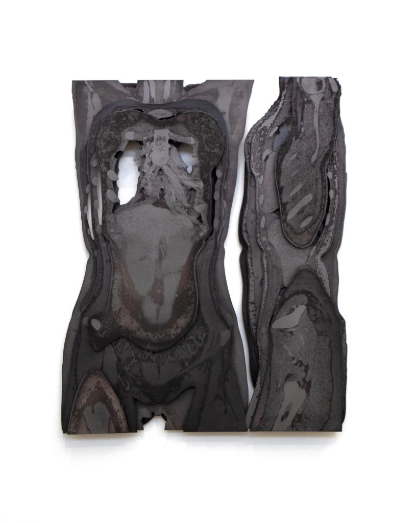 Mays has been nominated in the Fine Art category for her sculptural work Torso 28.08.25, which is a life-sized print of etched steel panels inspired by a CT scan she had after a bike accident.