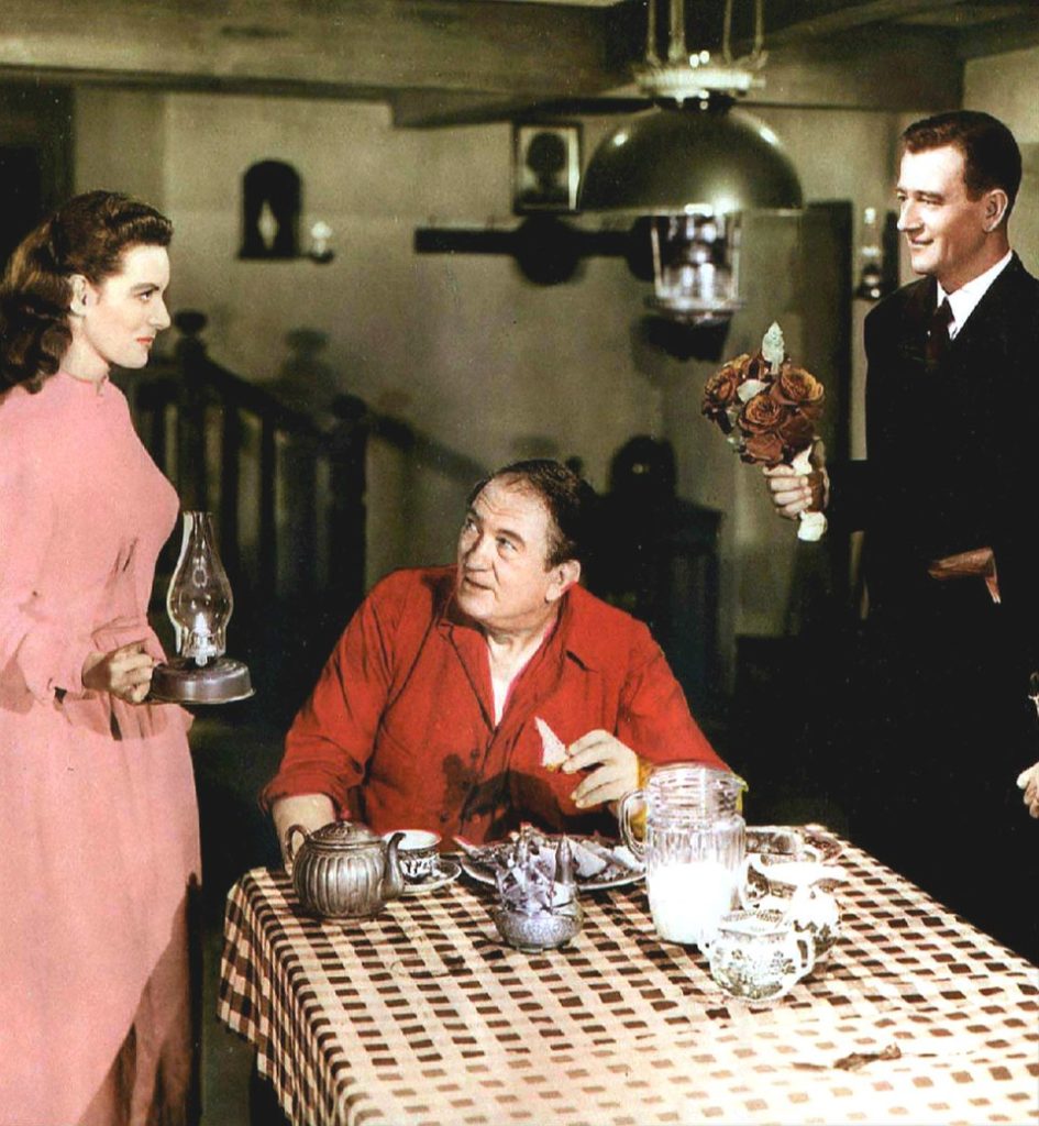 Maureen with Victor McLagen and John Wayne in The Quiet Man (public domain)Soon she was starring alongside the English actor in The Jamaica Inn and The Hunchback of Notre Dame.
