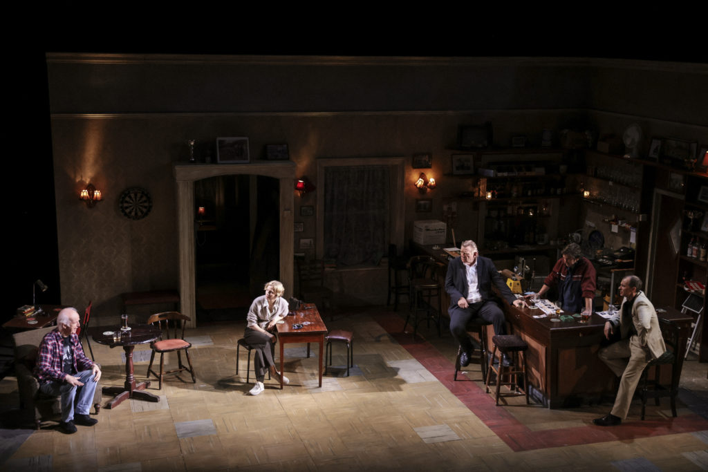 Pictured Seán McGinley, Kate Phillips, Brendan Gleeson, Owen McDonnell and Tom Vaughan-Lawlor star in Conor McPherson's The Weir at the Harold Pinter Theatre
