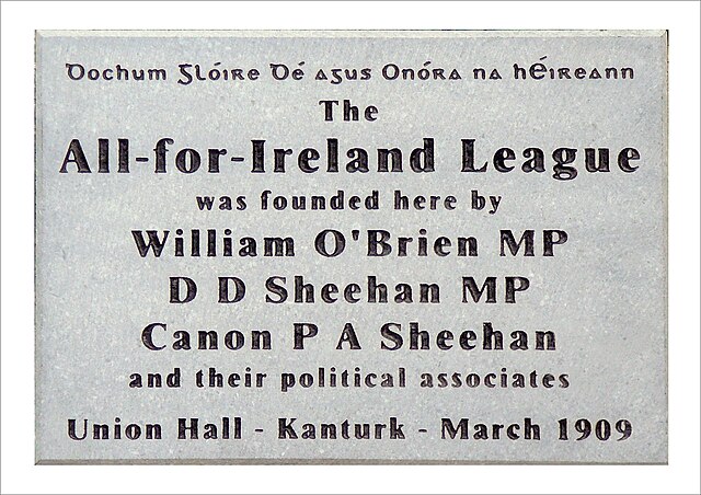 O’Brien drove the setting up of the United Irish League in 1898, a mass membership organisation that spurred the reunification of the Irish Party in 1900 under the leadership of John Redmond.