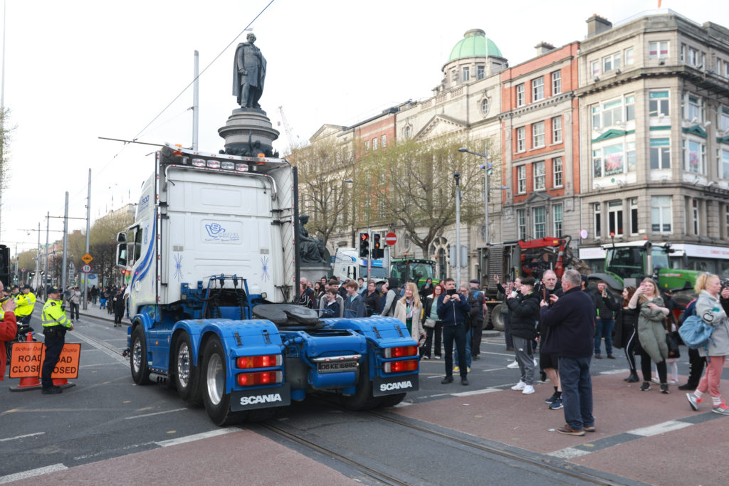 Traffic chaos on the south quays in Dublin where tractors and heavy goods vehicles stayed in the city overnight“While these protests have been peaceful, they are causing significant disruption for people in some parts of the country,’ they added.