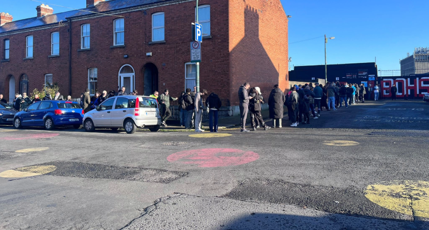 FANS have been queuing up outside Bohemian FC's Dalymount Park ground in Dublin to get their hands on the club's new jersey, produced in collaboration with Irish language rappers, Kneecap.
