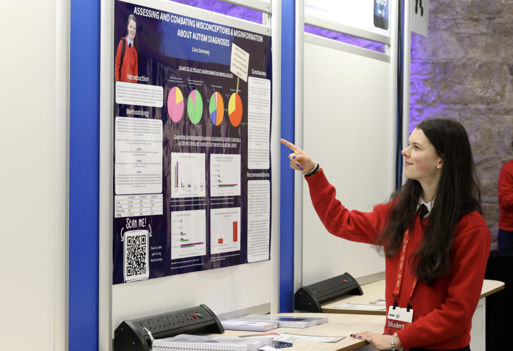 Student and campaigner Cara Darmody shows off her project about addressing and combating misconceptions and misinformation about Autism diagnoses at the Stripe Young Scientist Exhibition in the RDSOffering advice for students in the room, he said: “If you're ever worried all the big problems have been solved, no, absolutely not.