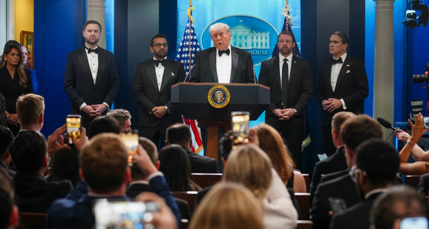US President Donald Trump speaks during a press conference in the Brady Briefing Room of the White House after the incident at the White House Correspondents’ Association Dinner (Image: Nathan Howard / Getty Images)The US president added that the incident underlined the need for the controversial White House State Ballroom, which is part of a proposed new East Wing under construction at the White House.