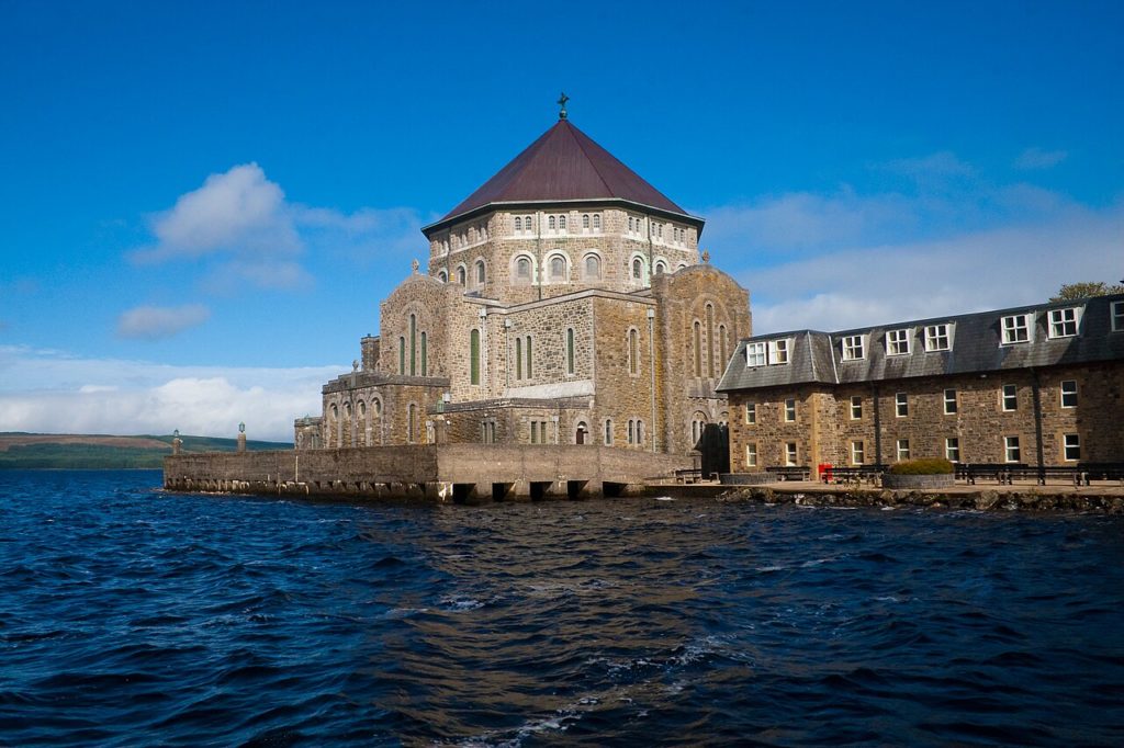 Ireland is not only surrounded by water but is overflowing with it. There are over 12,000 loughs and many of them have their own islands. I have been fascinated by them ever since I was a child and would hear stories about St. Patrick’s Purgatory, a place of Christian pilgrimage on an island in the middle of Loug Derg in County Donegal. It was founded, it is believed, in the 5th century by one of St. Patrick’s disciples St. Davog and attracted people from all over Europe, including many Medieval knights. Pilgrims still come today. Every summer they walk barefooted, live on water and dry bread and pray for three days and nights. Not for the fainthearted.