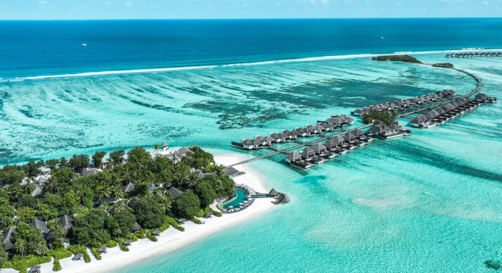 We settled on two sister properties: Four Seasons Resort Maldives at Kuda Huraa and Four Seasons Resort Maldives at Landaa Giraavaru. Different in size and setting, both run an hour ahead of Malé time — a clever touch that stretches sunsets, lengthens lazy mornings, and makes every day feel less hurried.