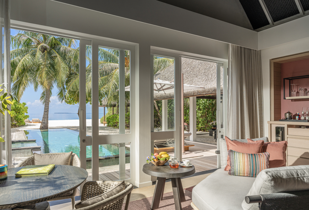 Our home for four nights was a sunrise beach villa, slightly larger than Kuda Huraa, with a private pool, outdoor shower, and indoor-outdoor spaces blending seamlessly into the surroundings.