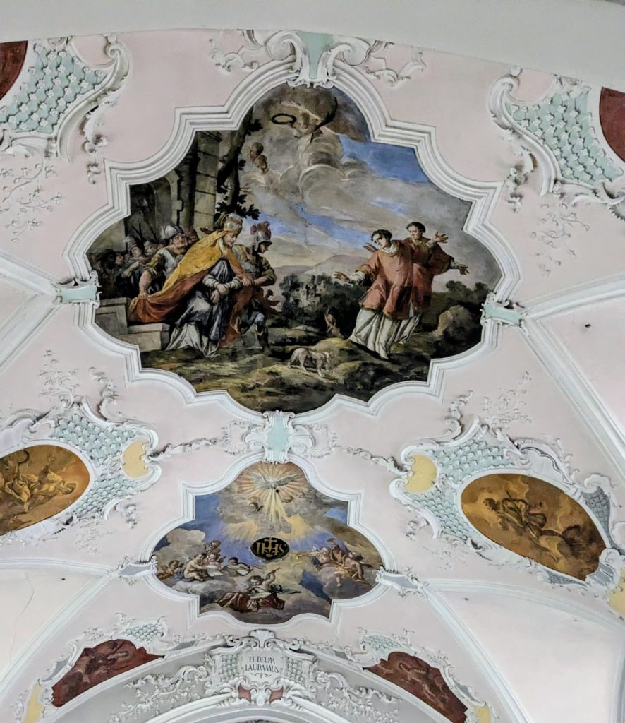 Beautiful ceiling art in Niederau churchIndeed, we took his advice regularly, heading for that festival where we met legendary local cheesemaker Johann Schönauer, as a visiting Bavarian male voice choir sang English sea shanties and we joined families in downing huge plates of that hearty Wildschönau favourite, Tiroler Gröstl (pan-fried potatoes topped with beef, onion and a fried egg).