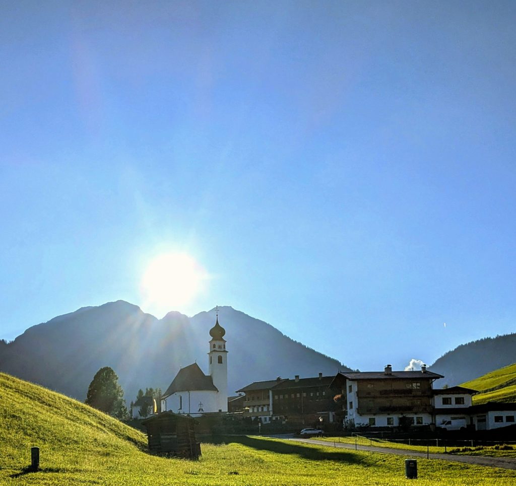 Sun sinking on Thierbach, the valley's tiniest villageThese are a few of the many timeless scenes we found in Wildschönau, a 15-mile valley sliced into the Austrian Tirol, where family, tradition, old-style charm, civility and centuries of fervent Catholicism are the pillars of daily life that greet the knowing travellers who return there every year.