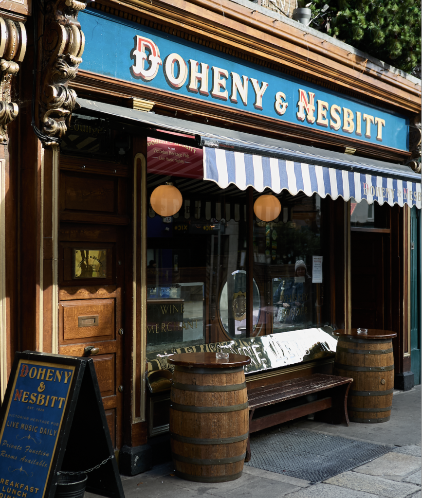 D is also for Doheny & Nesbitts, 5 Lower Baggot Street Lower, Dublin 2. A gem of a pub, even in a city studded with them. The seeds of Ireland's economic success were sown here by a select band of civil servants, politicians and economists in the late '80s in what journalists still describe as 'The Doheny and Nesbitt School of Economics'.
