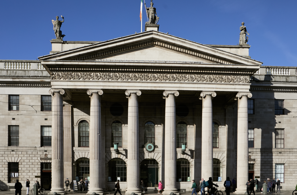 O is for O'Connell Street. Its gracious proportions, weathered statues of Ireland’s heroes and the historical GPO don’t quite outweigh the preponderance of fast food outlets and worse. Nonetheless, the GPO is one of the architectural gems of Dublin. The decorated frieze above the portico is topped off with three statues — Hibernia, Mercury and Fidelity — visiting tourists used to be told by locals that these were the 12 apostles. When it was observed that there were only three, the reply was that the others were inside, sorting the mail.