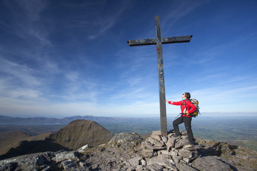 The summit of Carrauntoohil at MacGillycuddy's Reeks in Co. KerryKERRY boasts 27 Wild Atlantic Way Discovery Points. Highlights include the Ring of Kerry, covering the 110-mile (180-km) circular road around the Iveragh Peninsula — passing through Kenmare, Sneem, Waterville, Cahersiveen and Killorglin.