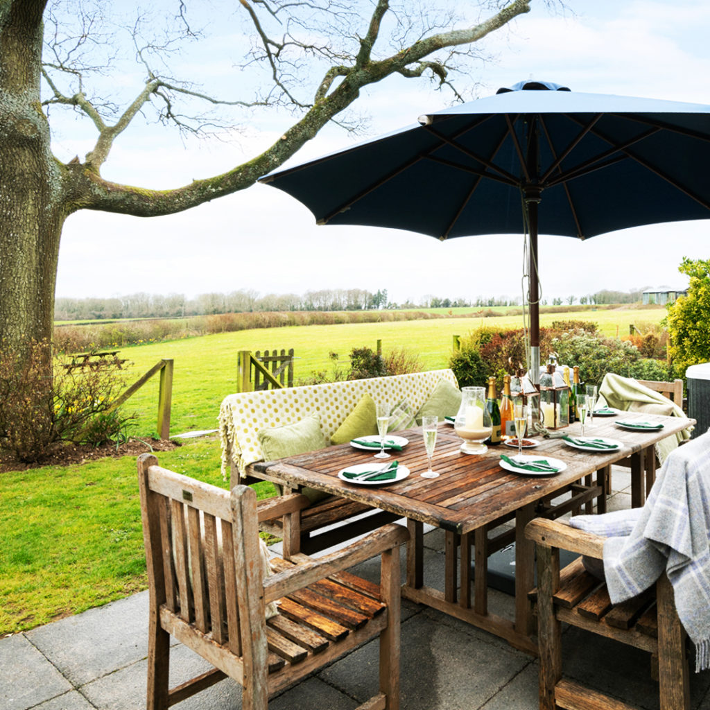 Outside, as well as the hot tub, there is a barbecue, garden furniture and a gate which leads to the meadow beyond, which is open to all ages for playing tag, practising cartwheels and general frolicking.